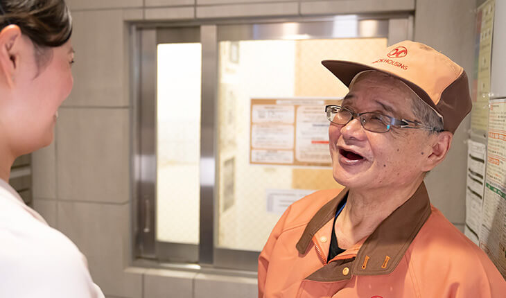 管理室において居住者の皆さまからのお問い合わせに対応します。駐車場・駐輪場の使用申込みの受付や、入居届の受理、ゴミ出しのルールについて聞かれることもあります。当社の顔として丁寧かつ迅速に対応することで、居住者の皆さまからの信頼を得ることにつながります。